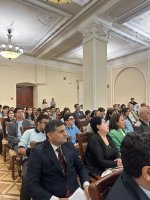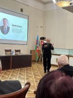 AMEA-nın Fəlsəfə və Sosiologiya İnstitutunun elmi işlər üzrə direktor müavini, tarix elmləri doktoru, dosent, Fövqəladə və səlahiyyətli səfir Eynulla Mədətli “S.C. Pişəvərinin ölümünə dair mayor Həsən Nəzərinin xatirələri”nə həsr olunan məruzəsini təqdim edib.