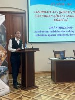 Tədbirdə həmçinin MATM Azərbaycan tarixinin elmi tədqiqi və təqdimi şöbəsinin aparıcı elmi işçisi, tarix üzrə fəlsəfə doktoru, dosent Əli Fərhadov “Azərbaycan” qəzeti: Cənubdan Şimala mədəniyyət körpüsü” mövzusunda çıxış edib.