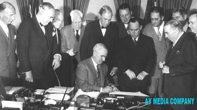 3 aprel 1948-ci ildə Amerika Birləşmiş Ştatlarının prezidenti Harri Trumen (Harry Truman) iqtisadi yardımları əhatə edən Marşal Planını imzaladı. İkinci Dünya Müharibəsindən sonra iqtisadi böhrana girən bəzi ölkələrə dəstək məqsədilə təşkil olunan iqtisadi yardım paketindən, aralarında Türkiyənin də olduğu, 16 dövlət istifadə edib.